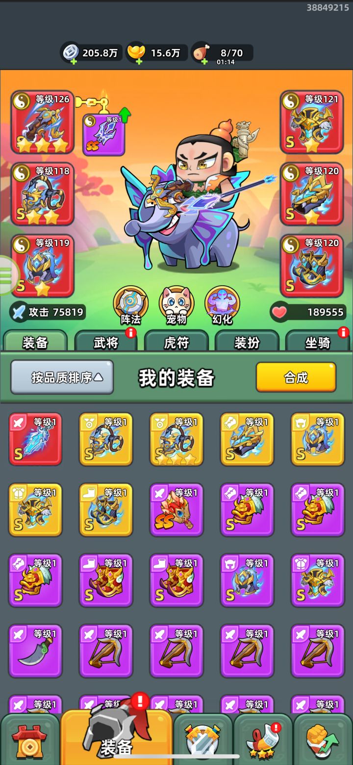 一眼扫过去能兑换的东西真不少,但是对咱们零氪、微氪玩家来说,实在没那么多葫芦籽来换,那咱就换点性价比最高的。什么坐骑、贤士、宠物蛋、器灵、武将结义道具、虎符洗练道具、符石都别考虑。 第一个值得换的是紫色虎符自选宝箱,能加快咱升级金2虎符(逗兽可以加快打BOOS的时间,也就是提高分数) 第二个值得换的就是神将印和武器打造锤(紫色和金色的都换,红色的太贵了,就不换了),武器实在难弄,