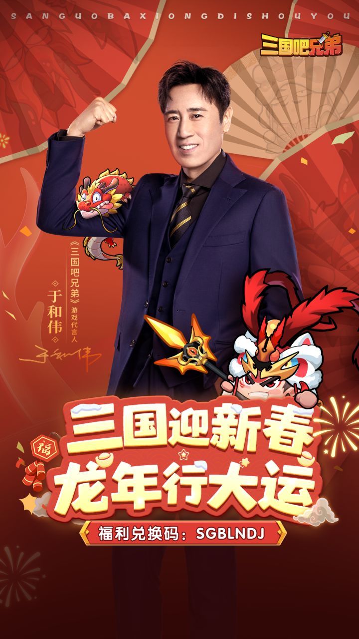 小将军们新年快乐!!大年初一领福利,新年好运永相伴!让我们一起和代言人「于和伟」老师在三国吧兄弟欢庆龙年!一起来领取新年福利吧~!※新春福利码:SGBLNDJ (有效期至2月18日00:00)※TapTap新春福利:评论留下你的新年祝福即可获得TapTap新春礼包一份~限量1000份发完即止开奖时间:2月12日12:00
