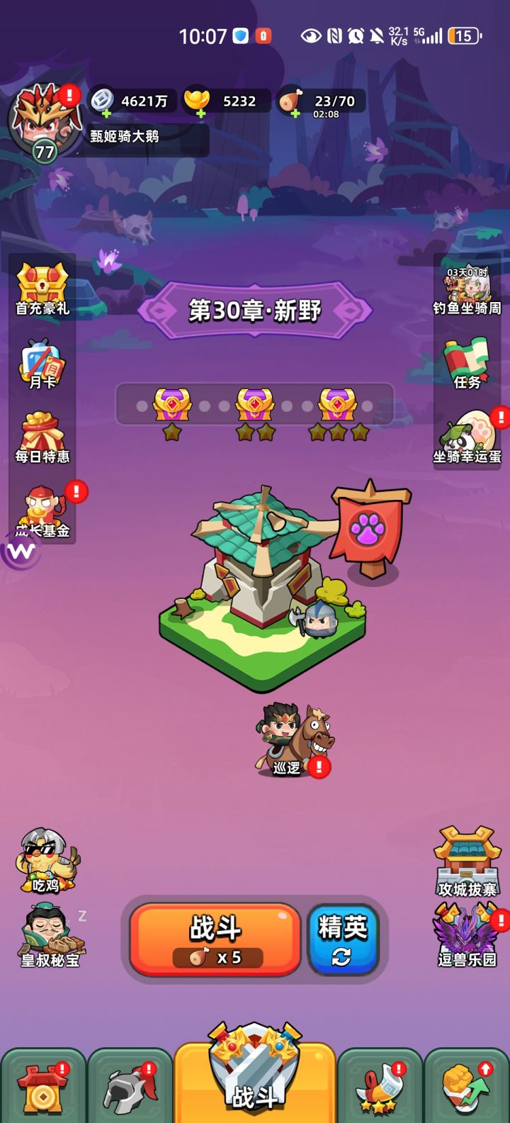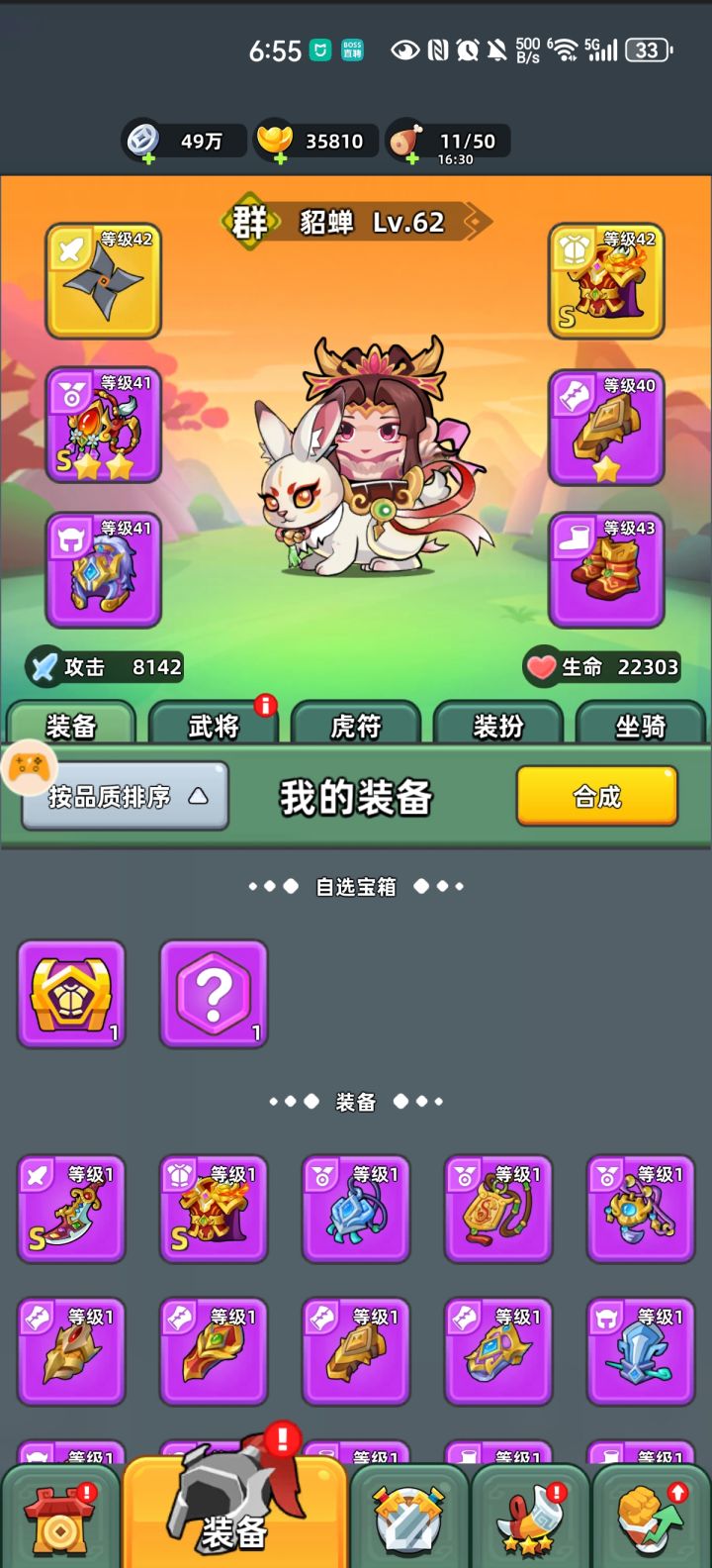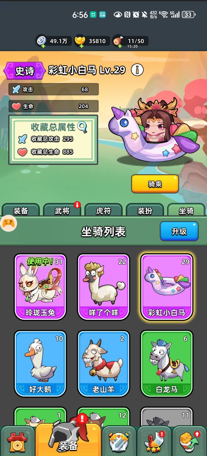 单月卡第21天,50级。拿到热闹龙舟,推图+1,玉兔已修复。