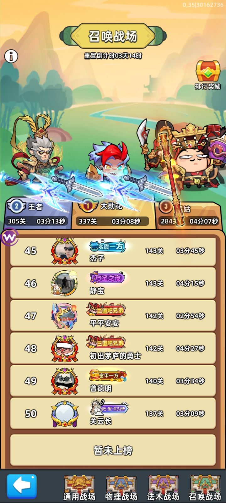 召唤战场第五十名137关,我167关上不了榜?这是什么意思?一个赛季白打?