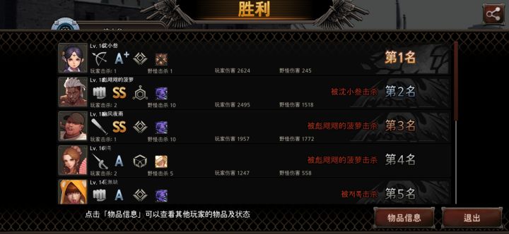 虽然神奇的队友在第三轮才开放就拿到了金箍棒,但是我熟练度慢了他们一级,金箍棒伤害不够,所以选择同时找到的特工伞了……