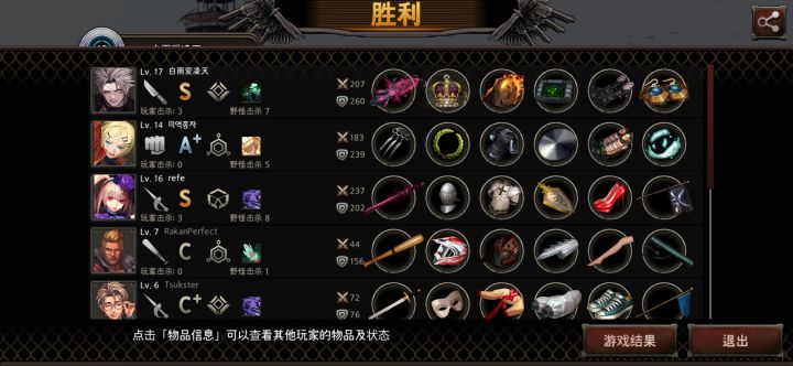 今天才发现,,,决定胜败的因素不在于你防御和攻击多少,而是在集齐基本防具和武器之后,找到足够的药品和快速的去杀人提高熟练度😂😂😂😂😂之前一直搞不懂为啥我防具武器都最高了,还是打不过别人,,现在终于知道了,