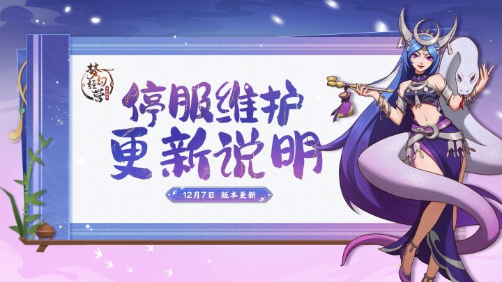 亲爱的宗主大人:为了给各位宗主带来更好的游戏体验,宗门将于2023年12月7日10点(周四)进行闭关更新。预计更新时间约为1小时,会根据实际进度提早或推迟开服时间,请各位宗主大人相互转达,并提前留意更新时间,以免造成不必要的损失。对于闭关维护期间给大家带来的不便,我们深表歉意。待维护时间结束,您只需下载更新包即可体验最新的内容!另外,各位宗主将会收到我们准备的一份小心意,敬请留意。感谢宗主们的