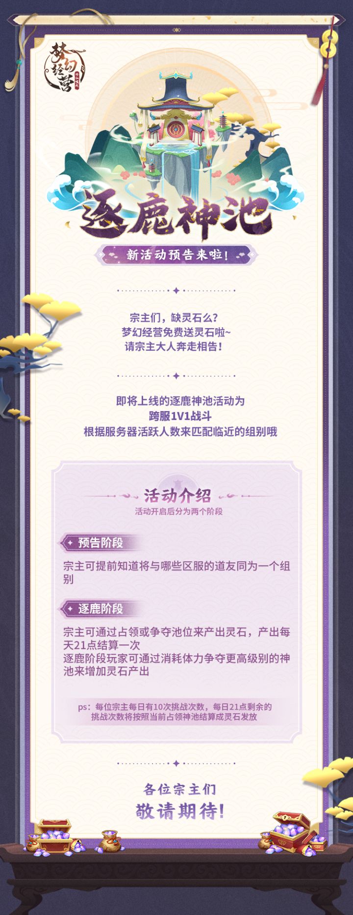 【梦幻经营】最新消息,逐鹿神池即将上线!