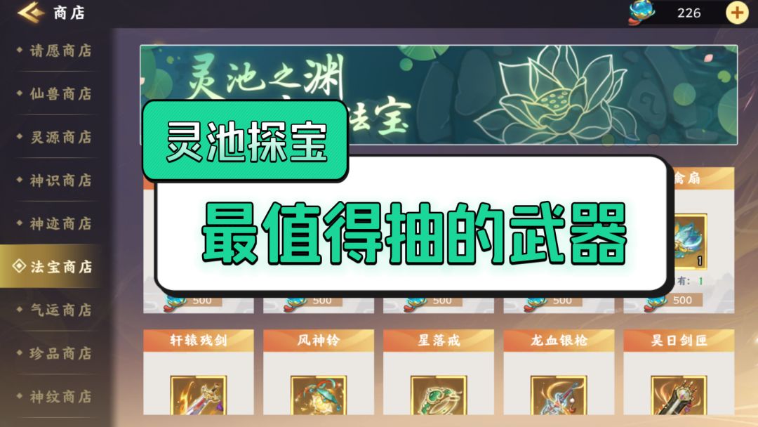 灵池探宝最值得抽的武器#攻略#游戏推荐#游戏讨论#新手攻略#宝藏厂商