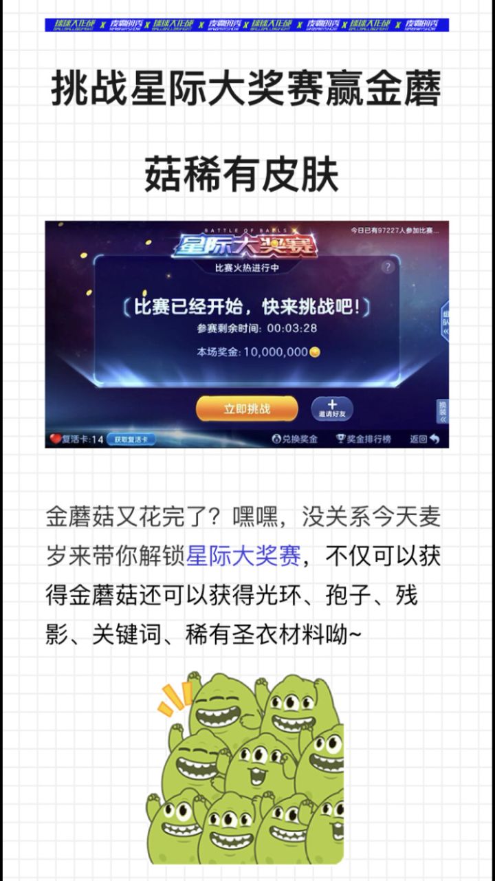 挑战星际大奖赛赢金蘑菇稀有皮肤奖励