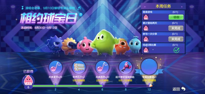 波拉哩超级重要的节日——球宝日就要到啦!狗仔菲再次出击!今天先来点小剧透吧!相约球宝日9月10日球宝日倒计时,海量福利抢先来袭!参与庆典演唱会最新一期活动,让我们相约球宝日吧!-实际效果以游戏内为准-只要完成任务就可以获得球宝日能量啦,随着能量条一点点充满,可以获得庆典音符、钛钢芯片、超大奇妙宝箱钥匙还有球宝日专属头像框!不过需要注意,相应奖励要到指定日期才可以解锁哦!球宝日带上专属头像