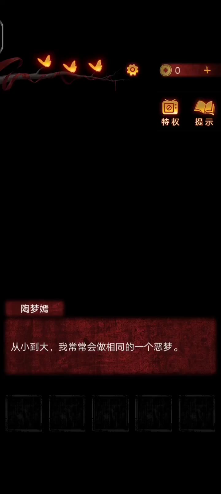 游戏中12元的特权本人建议的是能买就买的,毕竟这个游戏的收入来源就是靠广告来维持的,并且这个12元特权可以免广告过所有小游戏,而且还会送100金币。这个金币如果你在第五部《无间梦境》中没有用完是可以继承到下一部的游戏中。本作游戏难度偏易,除了最后一章较复杂有一些地方不看广告基本过不去。个人建议如果卡关了就多注意一下角落的一些道具,有些道具比较小一般不容易被注意到。最后游戏结尾的歌曲《来生戏》也是