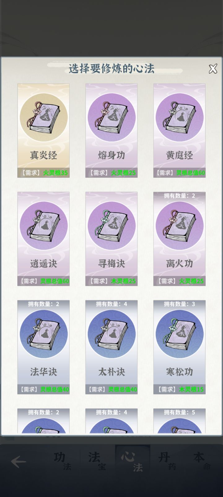为啥土枪学不了莲华经和问心呢?包里是有武学的,灵根也够,点学习心法却没有这两种。
