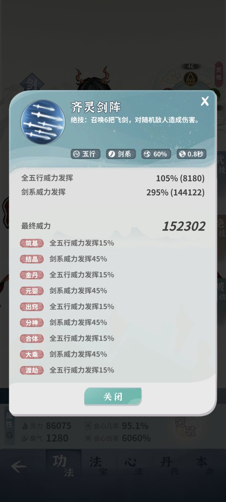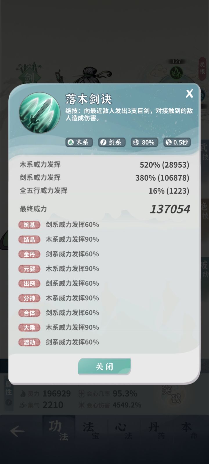 今天闲着没事把木剑金灵根拉到30,然后终于可以让木剑减CD叠到90%。最终木剑绝技显示0.5秒,这个数字看着挺快,实际跟主角放到一起攻速几乎一样,然而主角CD是0.8秒。然后我不信邪,把木剑和主角以一倍速打了100秒木桩,最终根据角色实际攻击次数计算出俩角色都是攻击了81次,没错分开打,数了好几次都是这个数。所以100/81=1.23秒。 最后我又拿土枪测了下,100秒攻击75次,100/75=1