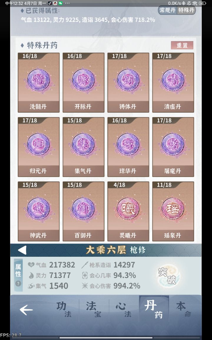 大佬们,土枪满丹指的是全吃完所有的丹药嘛?之前我看攻略是,先把气血,造诣,会心伤害的吃完就可以吃灵力的了。那个特殊的丹药又是怎么吃呢?这个我好像翻看了一下攻略,好像没有大佬讲得特别清楚的,除了土枪的丹药怎么吃之外,其他人的又该怎么吃呢?麻烦大佬们可以出一下有关于丹药的攻略,萌新也好方便查询入坑。然后我看土枪的毕业要求在160~170亿左右,我这个还差40亿多呢,不知道改怎么提高伤害了。所以是不是