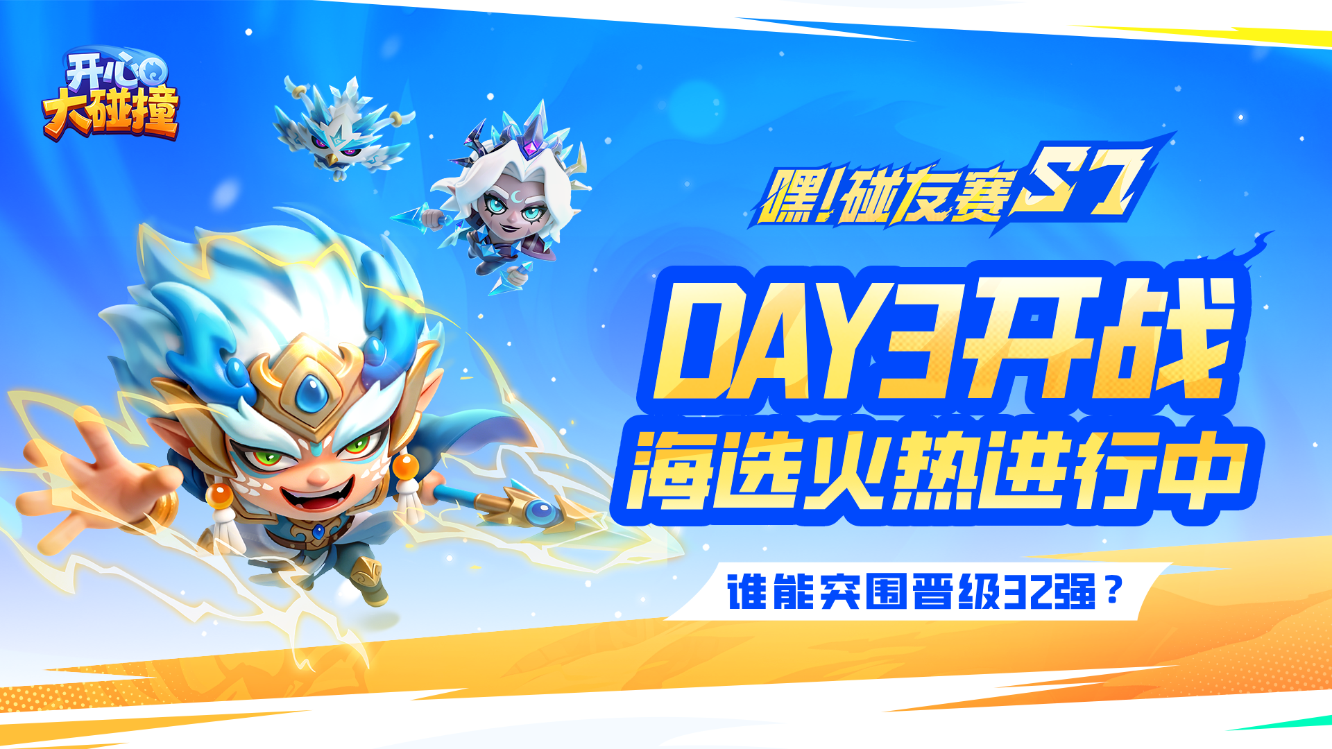 📈 【战报速递】海选赛DAY2晋级名单海选赛第二日战火暂歇,256名选手经过激烈角逐,已有部分强者脱颖而出。今晚,海选赛将进入最关键阶段,剩下的参赛选手都将为晋级32强而拼尽全力!【DAY2精彩回顾】🔍 【今日高能看点】海选赛DAY3对阵前瞻*今日看点来自开心大碰撞《碰友赛S7》群友“四方乄三个蛋”,特此感谢!💥 A组:大闹天宫派出两员大将上下合围,幸运星小茹能否延续自己“洛一杯”强悍实