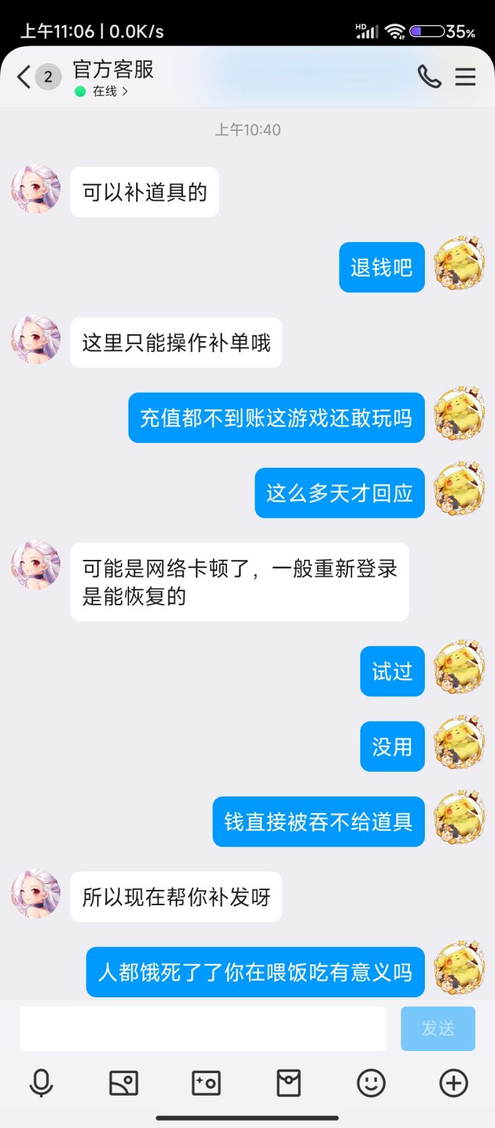 小程序充钱不到账,过了一个星期才联系上客服,解决问题的方法居然是补单,这么玩充钱没保障的