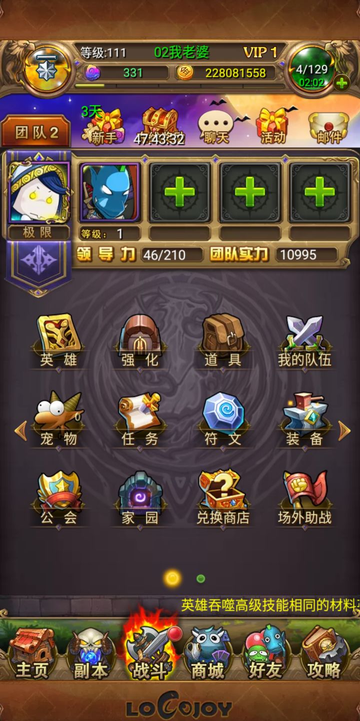 日常干嘛篇首先现在处于四暗影期间,前面有大佬发过怎么必弄闭月落雁,我就不多描述了,图片这套阵容就行,然后是24倍速兑换码:OpenEasy输入后退出重进就行。每天就是刷刷四暗影,体力的话远征打满,竞技场全买打机器人打满,南瓜都刷,工会日常,家园日常全弄了,然后剩下体力就全1.5倍扫荡就行。