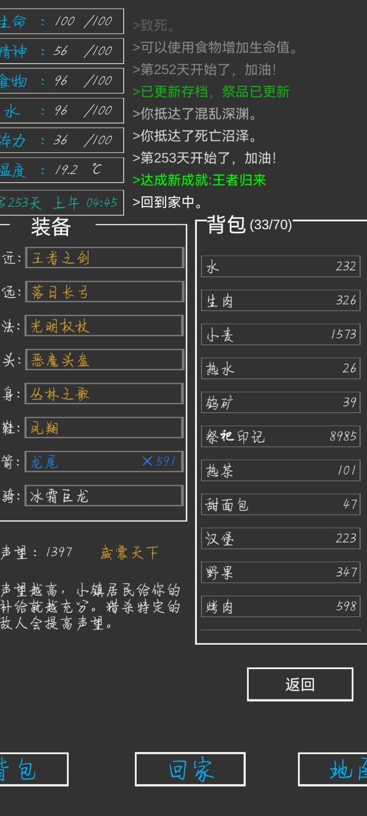 重新玩了一遍通关,算是对这个游戏有个交代,话不多说,直接上图。有问题可以直接在下方问。之所以这么多天是为了搞清所有地图有啥怪和能搞到的材料😂😂全成就,豪华装备,5秩序认可,红龙,齐活。实际上能抓3条龙,冰霜巨龙,红龙,蓝龙,不过没展示。