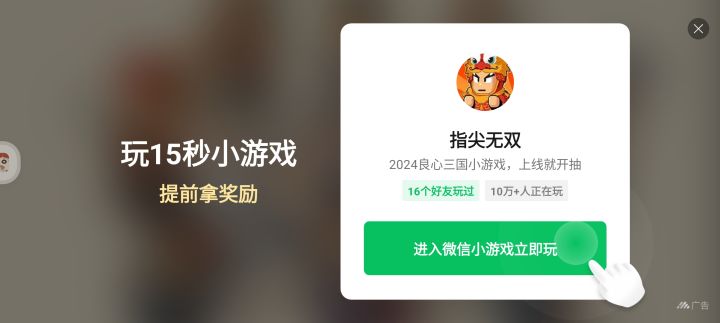这个广告都看不了了? 出去玩15秒 回来游戏自动掉了 掉了就算了 它重新上线广告奖励也没有?