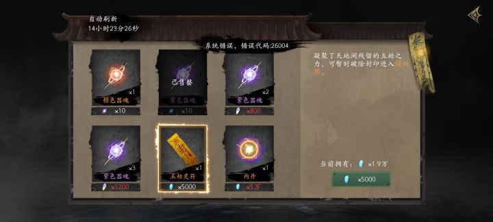 系统错误,买不了灵符