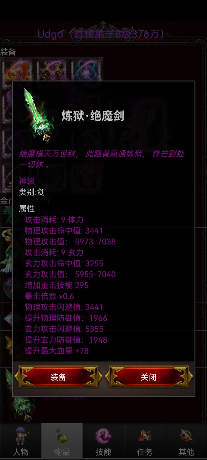 3.双闪双命制裁:双命中1300,双闪避1300,生命78888。后期高