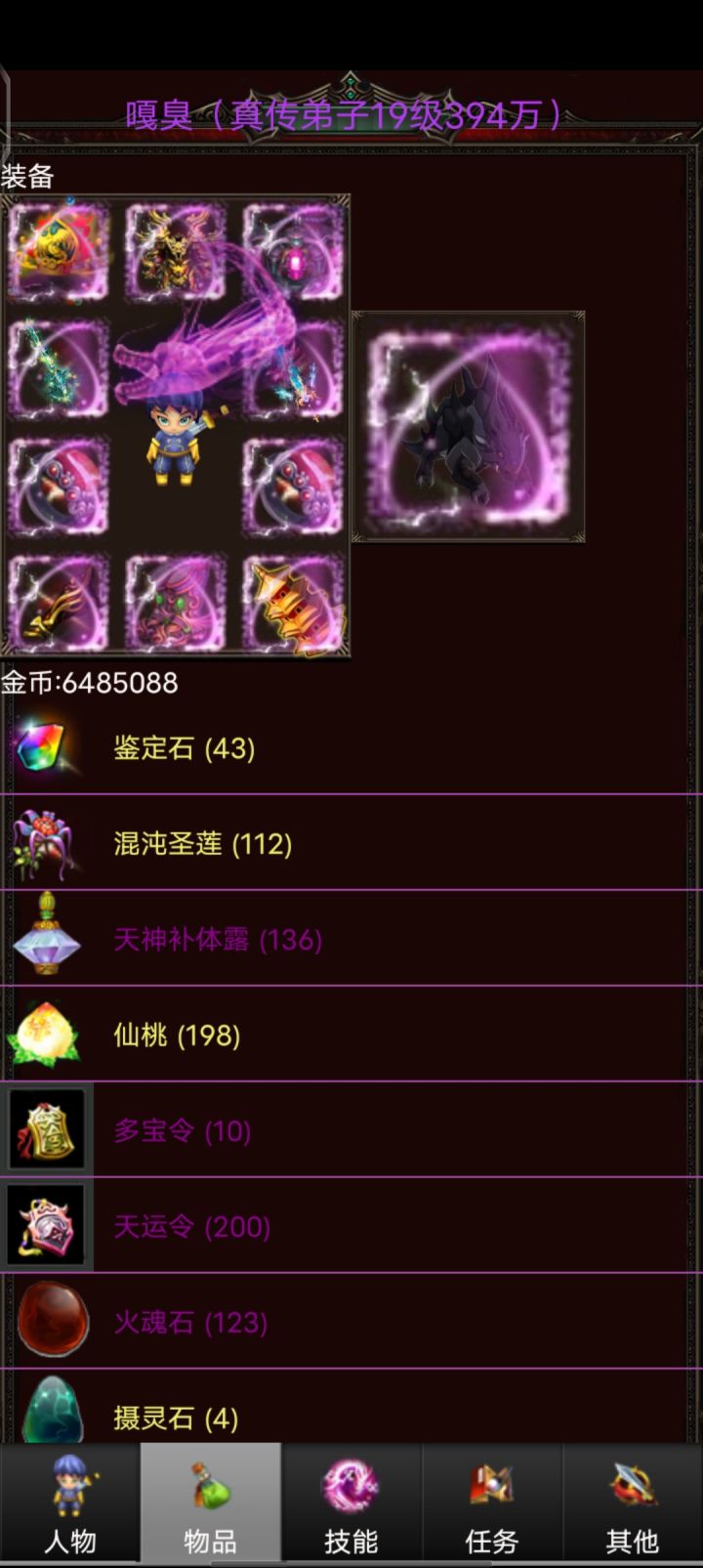 1新入坑的一定要注意,药物千万别设置,设置了取消不掉,卡的没朋友。2,能打多宝以后,初级药跟中级不缺了,这里有个小窍门,把武器卸掉去打伏地魔,魔宠洞/门口。3,卡等级,容易出多宝令,比如70-80-90-100的时候,别升级,一直打多宝龟,令牌会卡在一定要去的数量很难增加(这个感觉有,我好几个号都是如此)4.每次打完多宝鱼或者西门以后,直接去打狼或者器灵,当中别碰其他怪,我打了14只狼就出了甲,打了20来只就出了项链升级胚胎,这个不知道有没关系。有兴趣可以尝试下