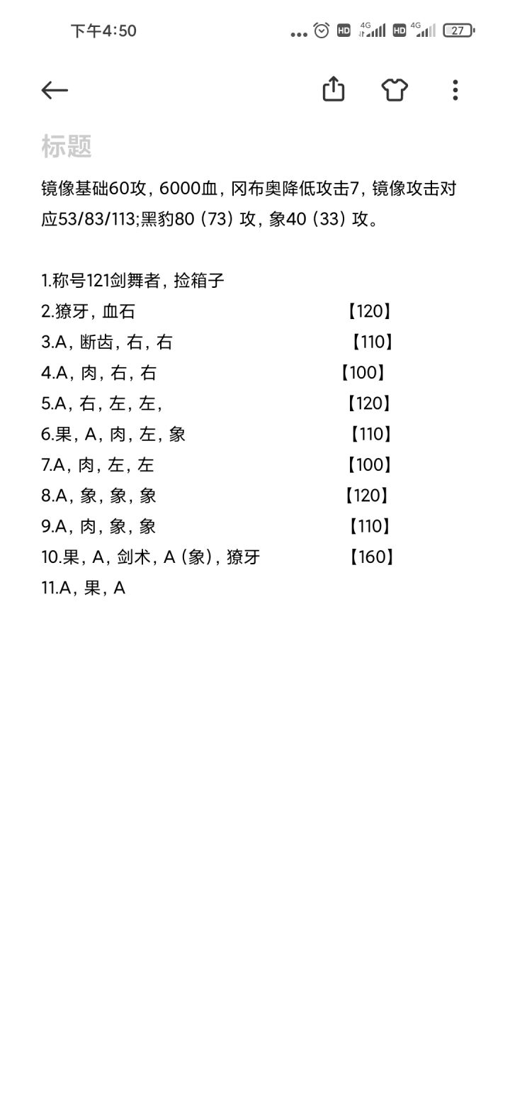 阵容:单梦魇 药水:月华 神器:全能法戒 称号:圣锻 远程1攻:执政官铠甲50%+月华10%+挂树18%+守护头盔25%(宝石九九十即可22%) 小怪层思路:透镜找钥匙 ①永恒酷刑+诅咒者链带,前期锻造一个次元鞋,中期锻造扭曲斗篷(对于30攻以下攻击100%闪避,极大提升爬高效率) ②杰特的怨念,小怪25%概率损失50%血,配合梦魇灵魂反馈小怪100%伤害 ③科雷套装10%斩杀(头,凯甲,手,腰带