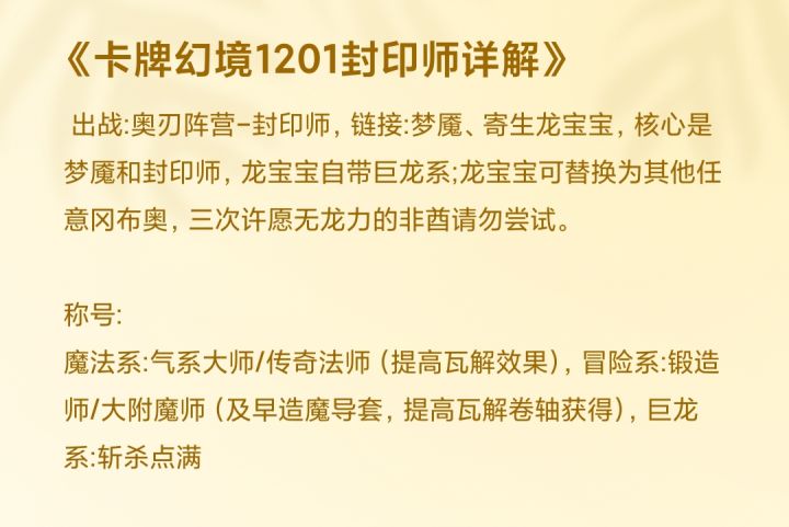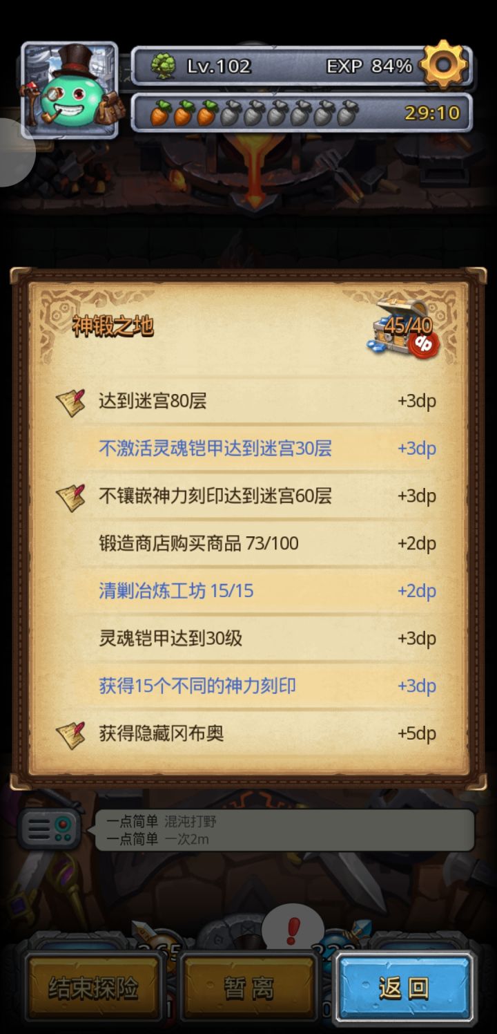 阵容:商人出站链接神灯、帮派干部 称号:冒险做Dp走异界大盗神 爬高走大铸剑师或者圣锻 战士大铸剑师 魔法位面先知 神器:竖琴 药剂:随意 PS:适用于出云岛或者埃拉西亚这样需要大量地图道具的图,也适用于开荒做DP。 打法思路: 进图先点出锻造工匠套,随后平A过图,遇见商店全清; 35层使用魔法飞毯回5层继续搬空商店; 刷到爬不动点出位面先知回低层; 后期点出大铸剑师升级龙鳞套,再点出战士系毁灭公爵辅助过图; 高层BOSS靠地图玩法或者卷轴数量砸死。 如果视频有帮助的话希望大家可以一键三连支持一下,谢谢!