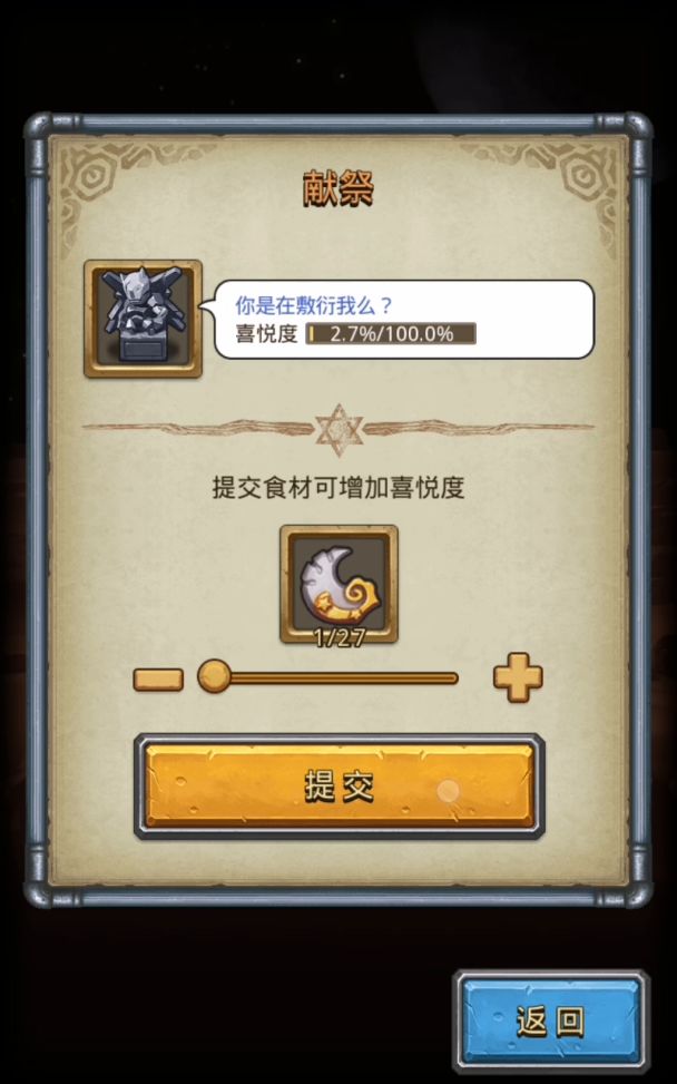 好吃〈+1%〉:蓝晶凝胶真香〈+1%〉:神之血喜欢〈+1%〉:龙肋排还不错〈+0.5%〉:月之骨,梦幻果,水晶蛋,蜥蜴蛋一般般〈+0.2%〉:彩虹晶贝,精灵尘埃,恶魔南瓜,奶油浆果敷衍〈+0%〉:星之屑,神塔花,妖精之泉,魔幻豆荚恶心〈+0%〉:古树之心,星薄荷,香草面粉