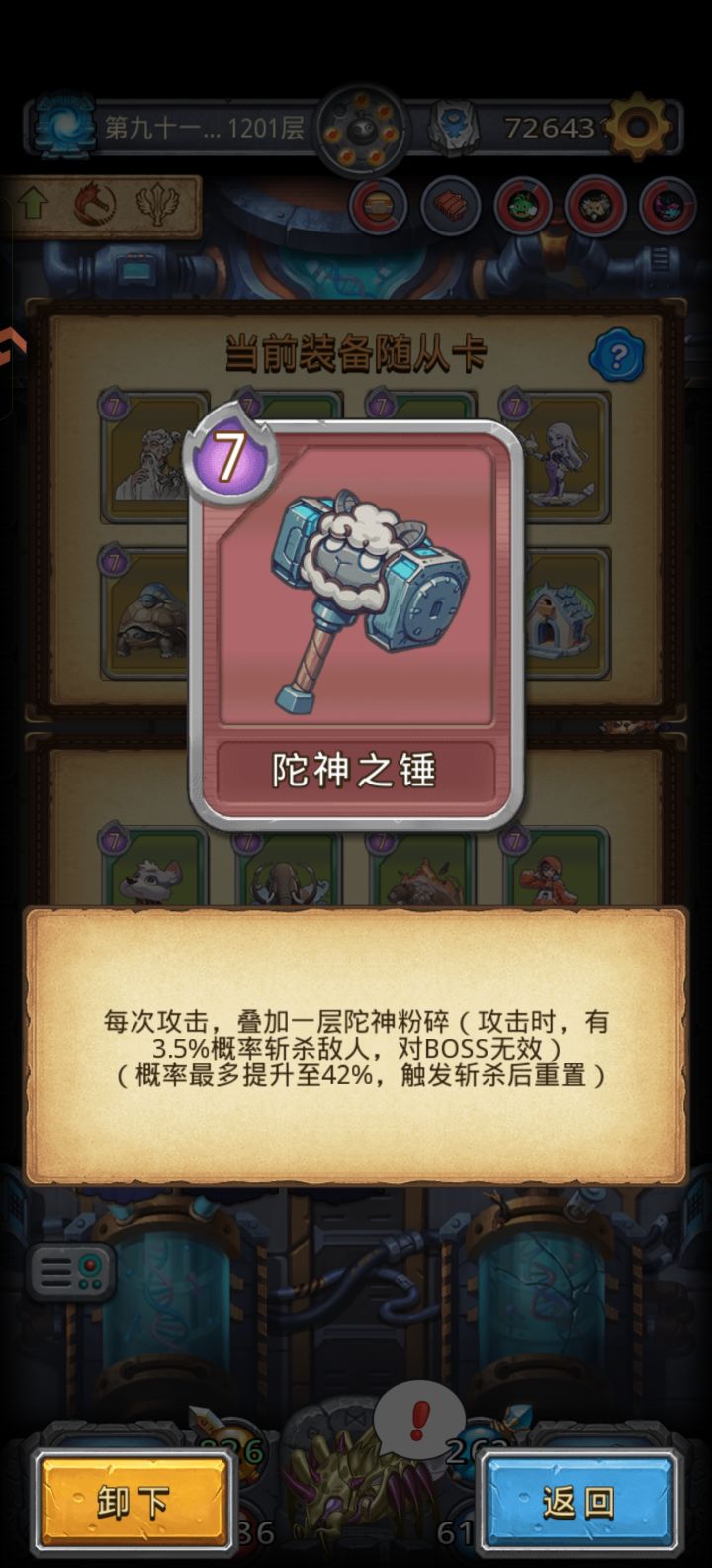 先看视频 介于这个档是昨天刚打出来的,所以才到100层,但据此也能看出来,其实已经无敌了。 先说搭配和地图:福神加世子加任意魔法系,地图为血腥要塞。 再说要求:魔法系唯一要求是星级低,没吃加血量的食物。福神和世子如果已经吃满了食物,但很遗憾你可以很难达成,如果是萌新还没有世子和福神,那恭喜你,你可以自选金罐选这俩(如果你想要体验1201的话),然后不要吃任何加血量的食物,并且不要升星。 再