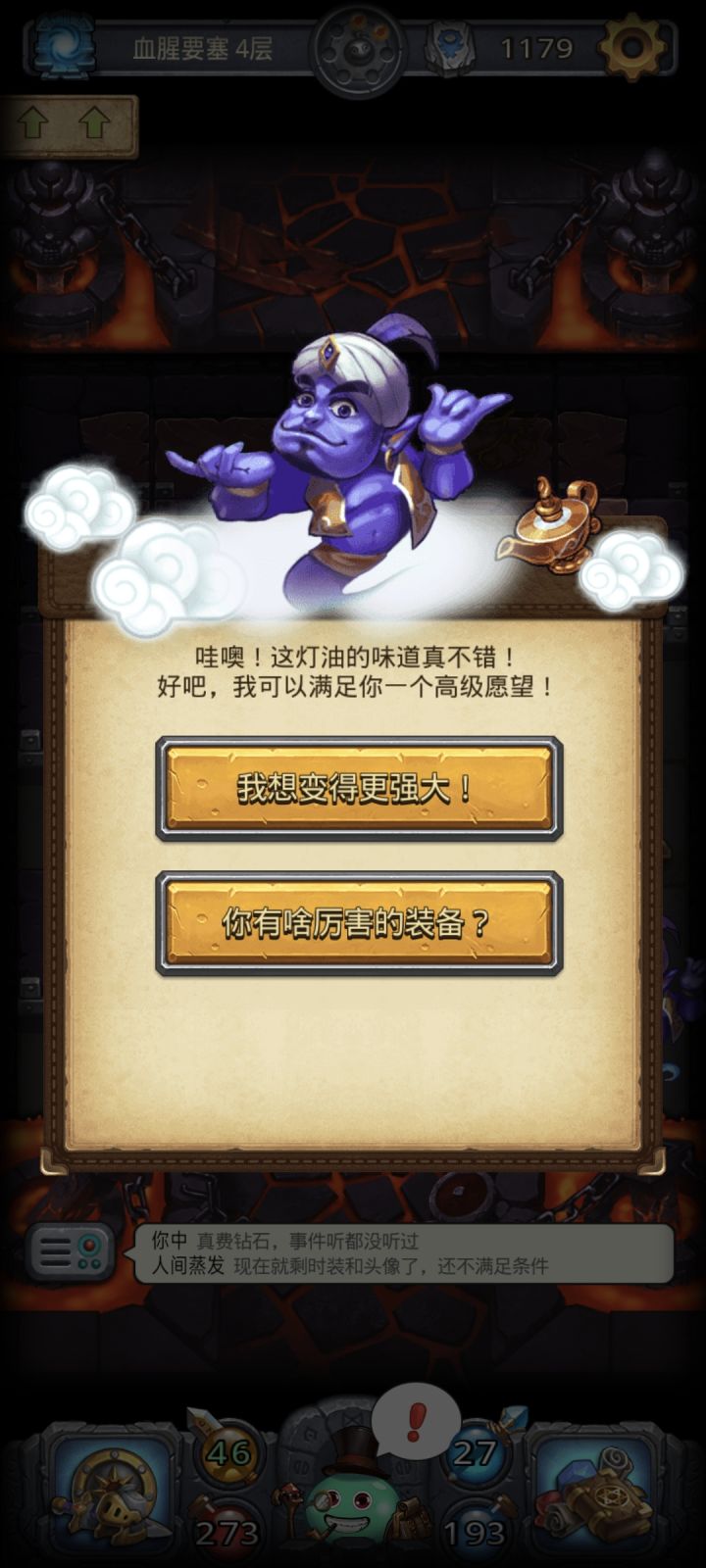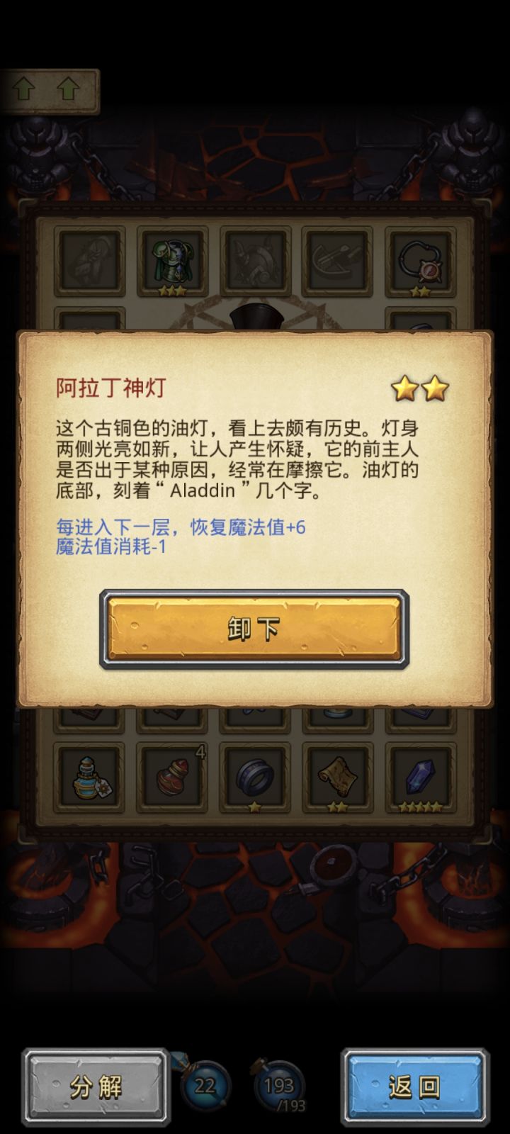 为什么我玩其他地图灯油-1怎么没有了,刷了3-4遍都是魔法减➖把魔法减➖点出来后强化神灯直接没了