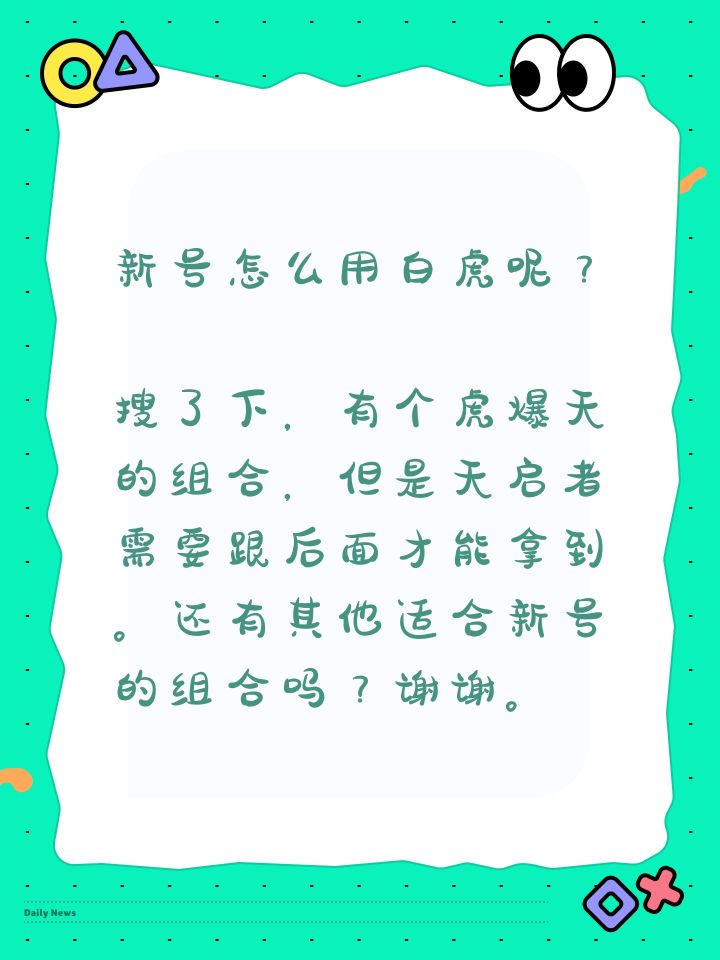 新号怎么用白虎呢?搜了下,有个虎爆天的组合,但是天启者需要跟后面才能拿到。还有其他适合新号的组合吗?谢谢。