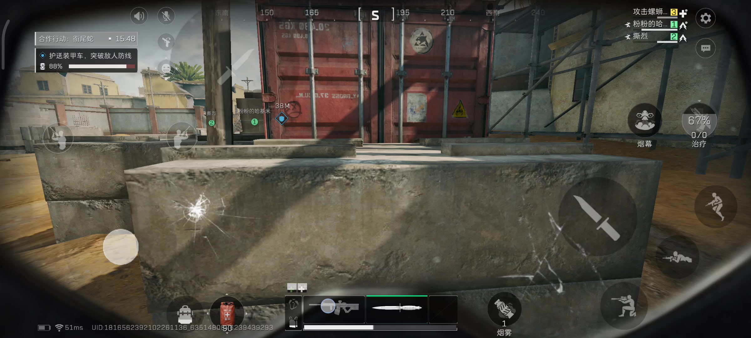 版本更新前,乌鲁鲁的巡飞弹开镜发射后,可以双手离开屏幕,版本更新之后需要长按控制方向不然会秒退,还有啊,医疗兵那个紧凑突击步枪更新了新的配件还挺好用的,可以装握把了