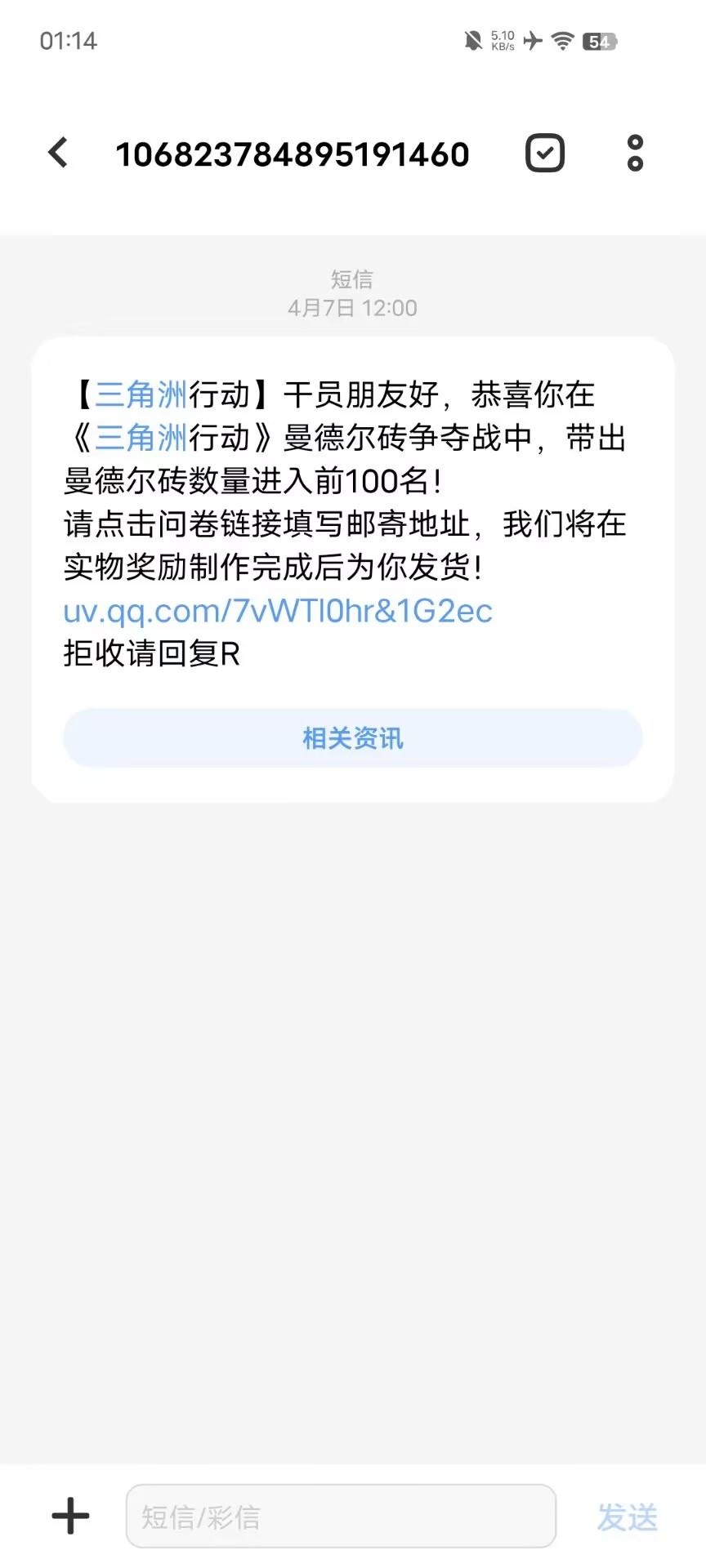 二测结束发的短信,地址也填写了,到现在还没有动静,b站官方号,微信公众号也私信过,还是没有,跪求兄弟们帮顶一下