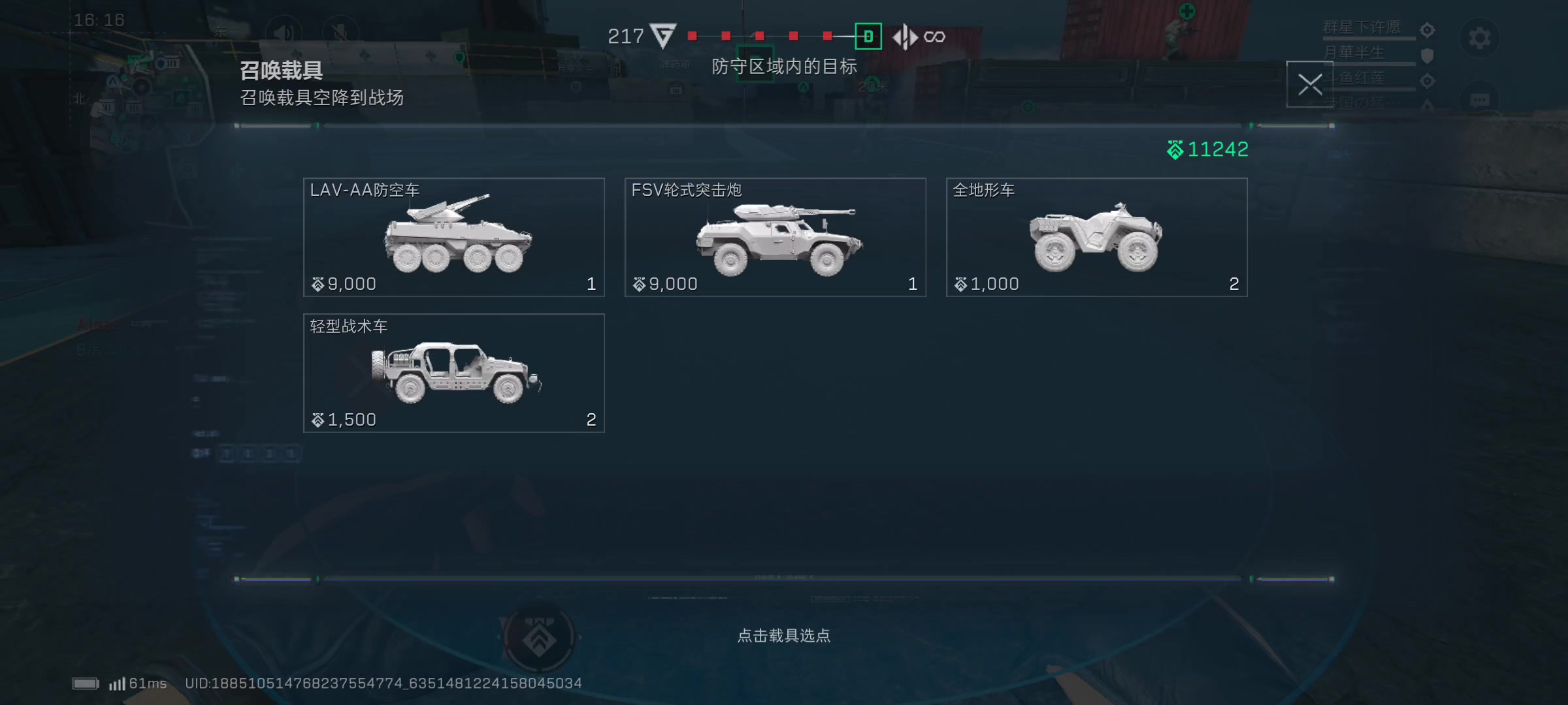 在选择积分载具的界面被威龙的虎蹲炮击倒后,复活后无法关闭载具选择界面也无法召唤载具空投#bug反馈
