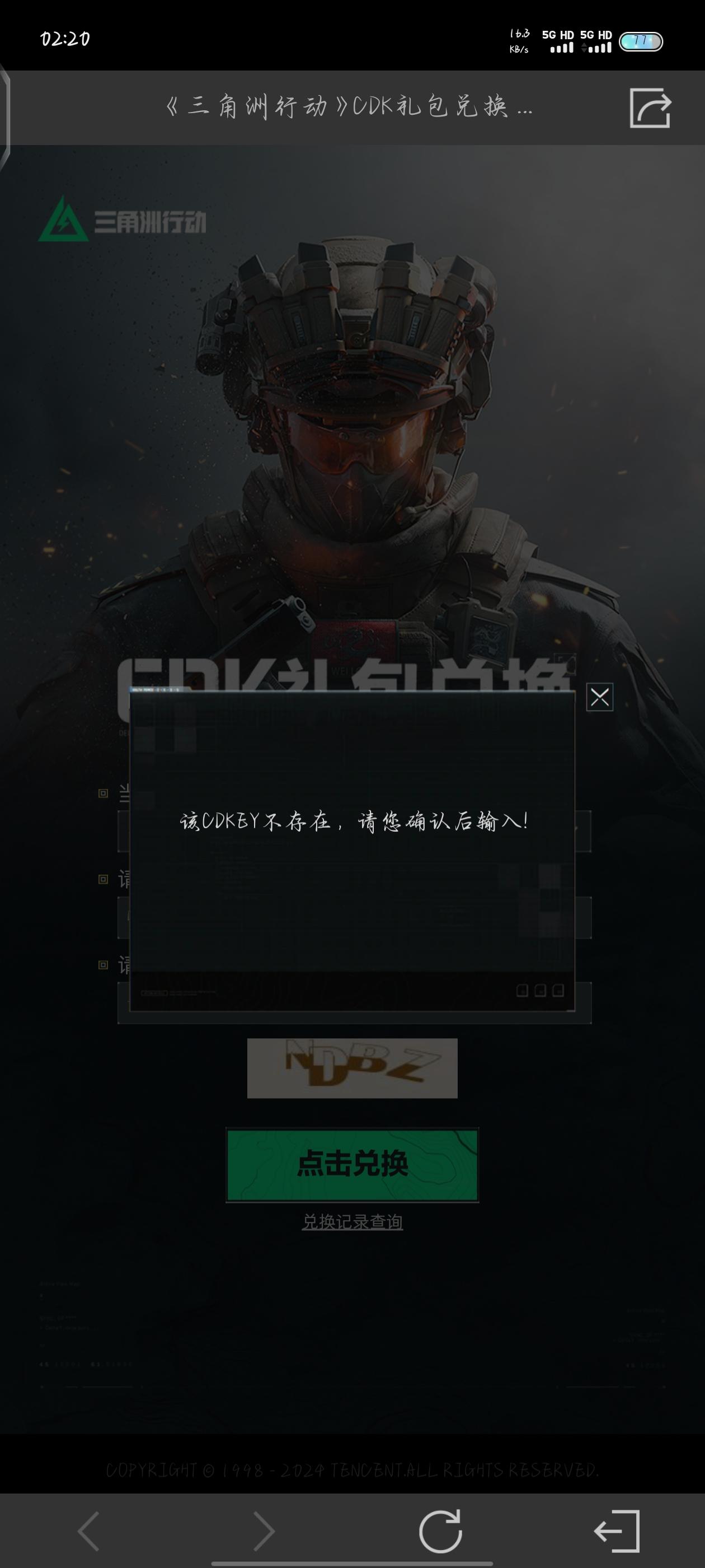 明明在公测前我抽出来了,我兑换时提示我兑换码不存在#三角洲行动