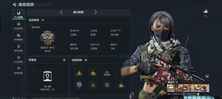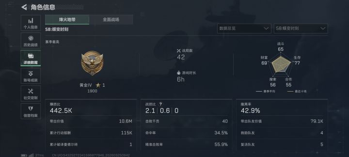 基本每晚20至24时稳定在线,主玩机密大坝,另外几张除了监狱都问题不大,找端游kd1.5左右,有麦能交流固排一位。重点是不贪包不贪包不贪包!物资分配友好交流就行,我们绝对不贪。技术方面你放心,虽然我们达不到顶尖,但机密场绝对够用。武器记录可以忽略,场次多的是之前跑刀的,可以小博大可全装进攻。