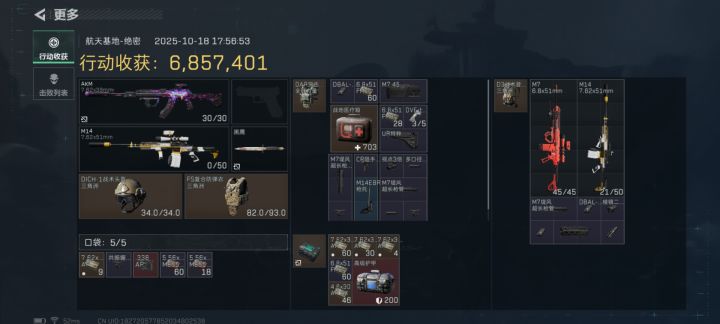 今年中旬刚玩的三角洲,靠大坝长弓起家,打航天就是为了一桶油,跟油失之交臂三次,一次杀了一个6套600w+油撤离脑子一热没选对路被战车打死,队友离我68米不来救我😂(后来两队友全被6死)接着一次后来才知道清图了从包里搜出一桶油,结果怂了,怕被老鼠蹲,多搜了几个点结果拉闸时间慢了2秒,拿着油走丢包😂 最后一次在火箭那里,对面两傻子被喷火兵弄死了,我还在远点架狙,火箭都快走了我才跑过去吃包,结果包里
