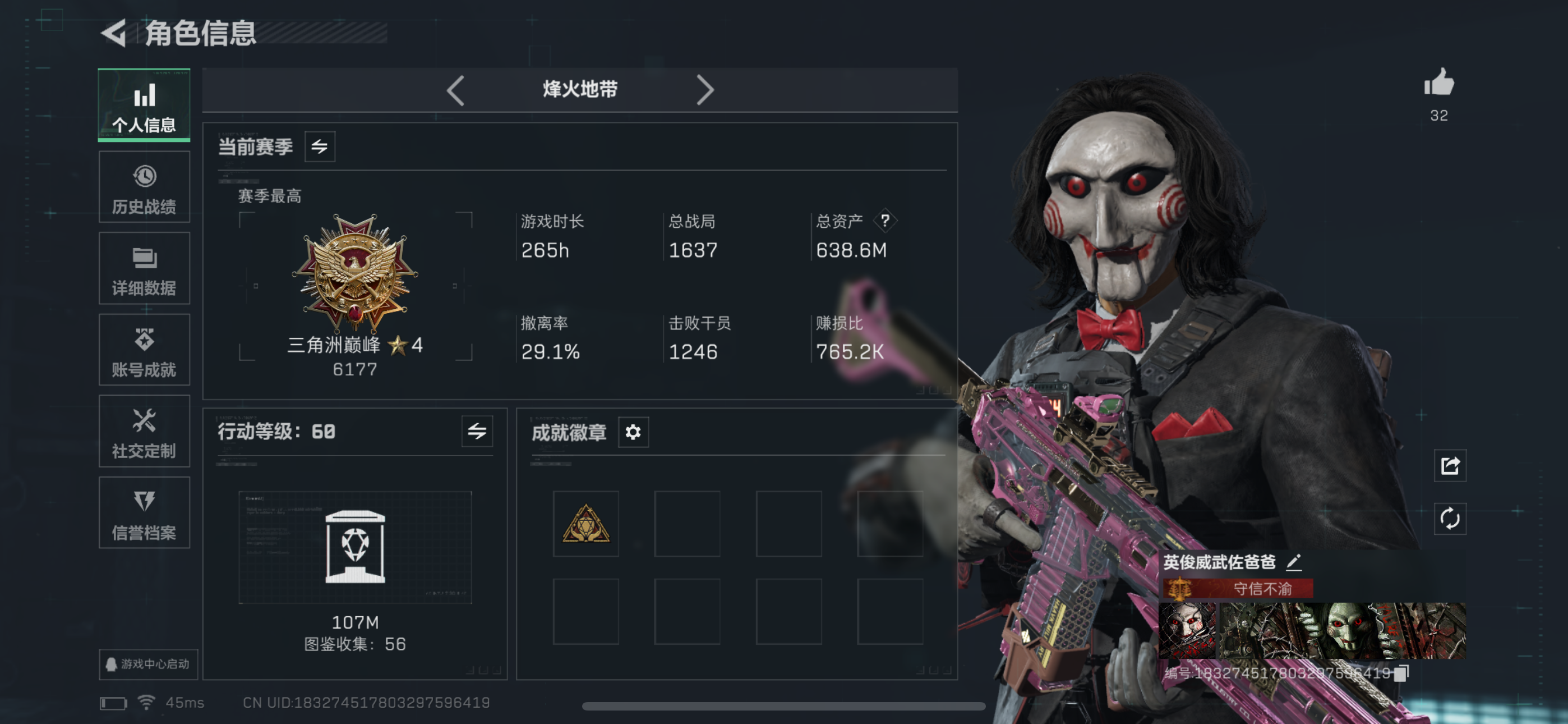 主要玩大坝偶尔航天 巴克什 文能跑刀当蛆 武能六套猛攻 一般没事下午晚上都在 找一个心态好 有战斗力的有缘人