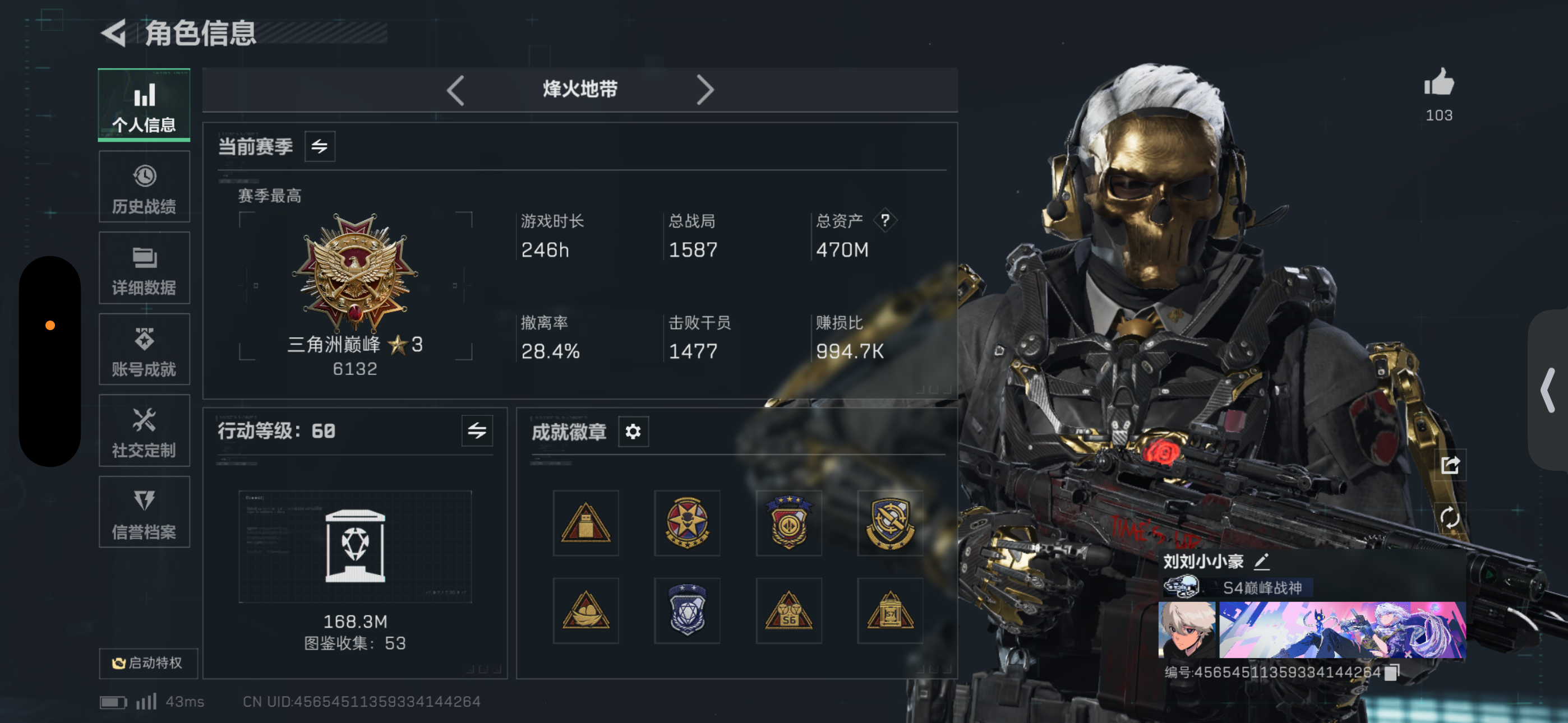 游戏比较菜,不会架枪,只会站桩打,晚上7.30到11.30一般都可以在线,摸到出过的红可以分给队友,一起解锁收藏室展柜。tap用户名和游戏用户名一致。