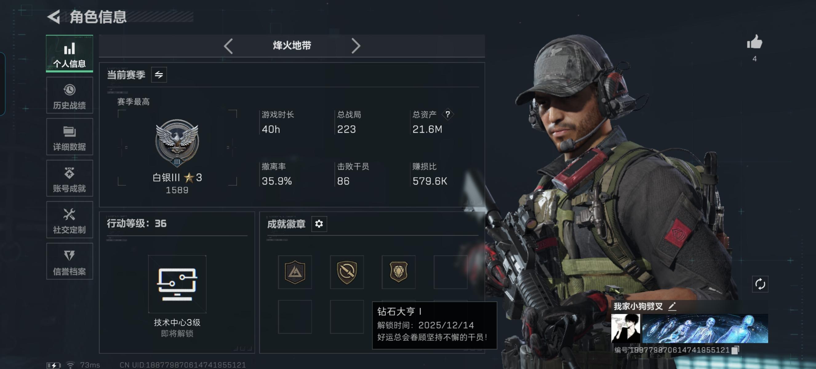 本人是一枚刚入坑三角洲的萌新,温青,不压力队友,抗压,不上头,刚玩三角洲一周,有点菜,正在加班加点练技术,对FPC游戏很喜欢,等熟练以后可以成为大手子,想找一个固玩,男女都可,有麦,账号爆率极高,两天出刀片四天出非洲之星,匹配的对手难度也低,有意的关注我或者加我游戏ID 我家小狗劈叉#三角洲行动