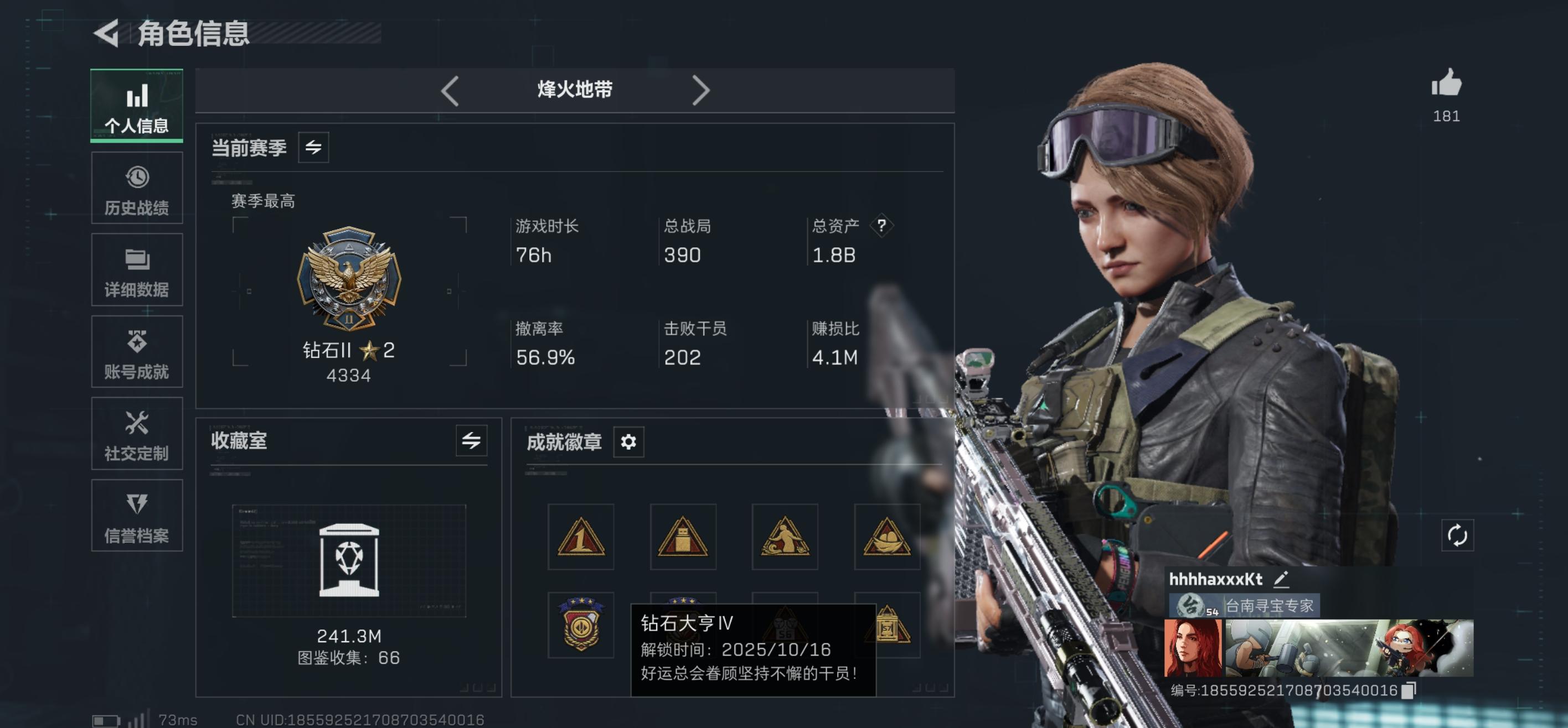 一般晚上七点半到九点半左右出没,周一玩的时间长一些,绝对不会压力队友,主玩信息或者医疗,常驻大坝,有需要其他图也能跟着跑,但是不怎么认路