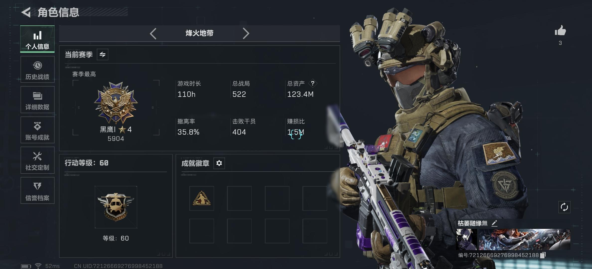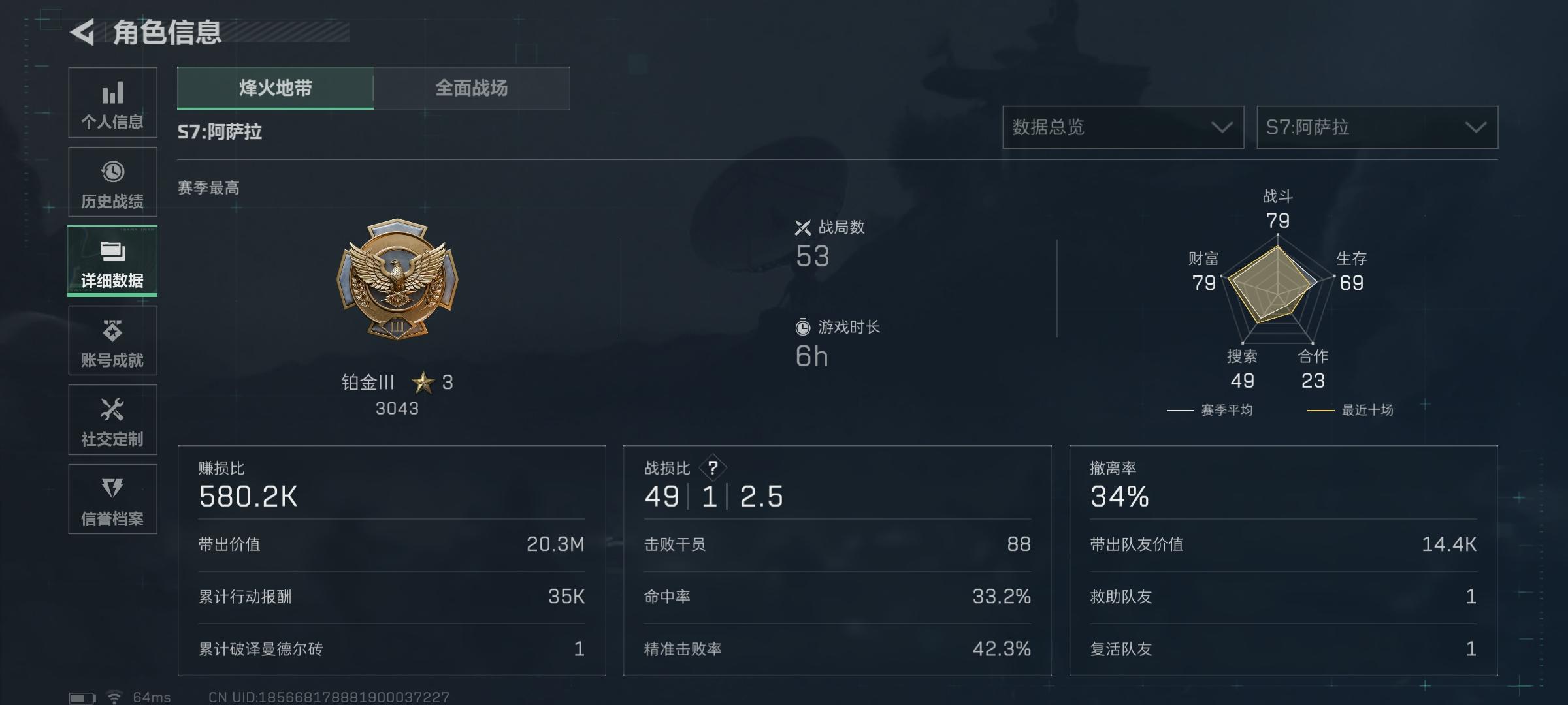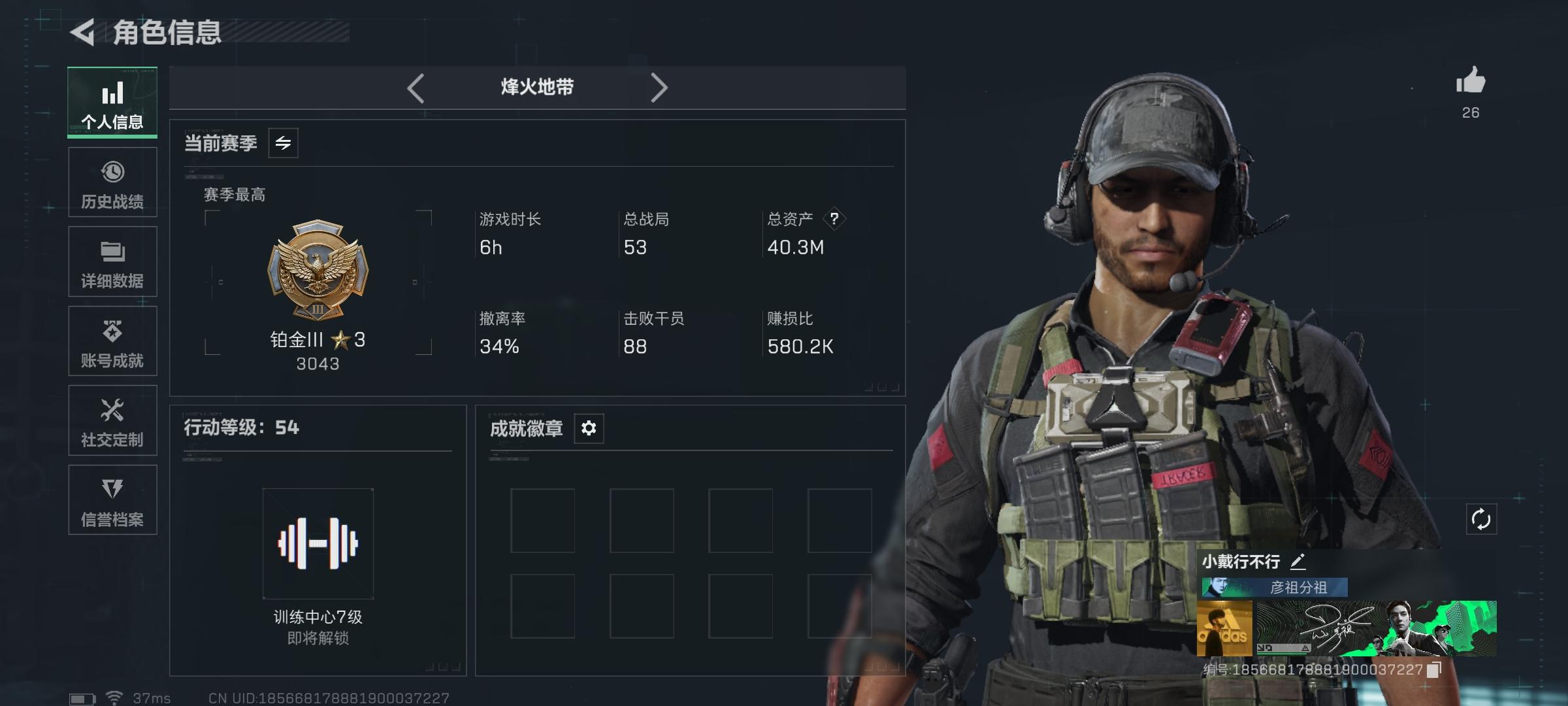 主打巴克、监狱,每天都玩擅长突击位,玩法偏猛攻