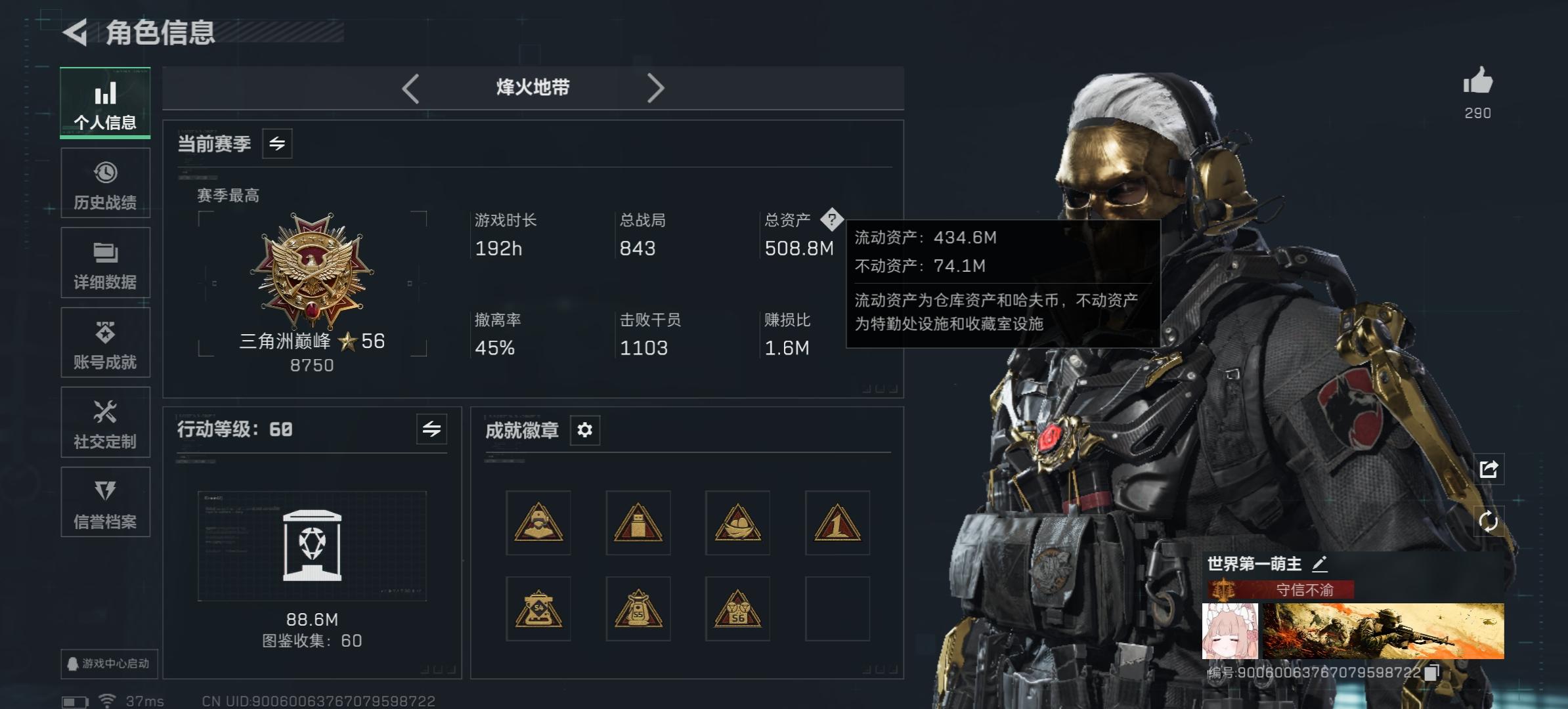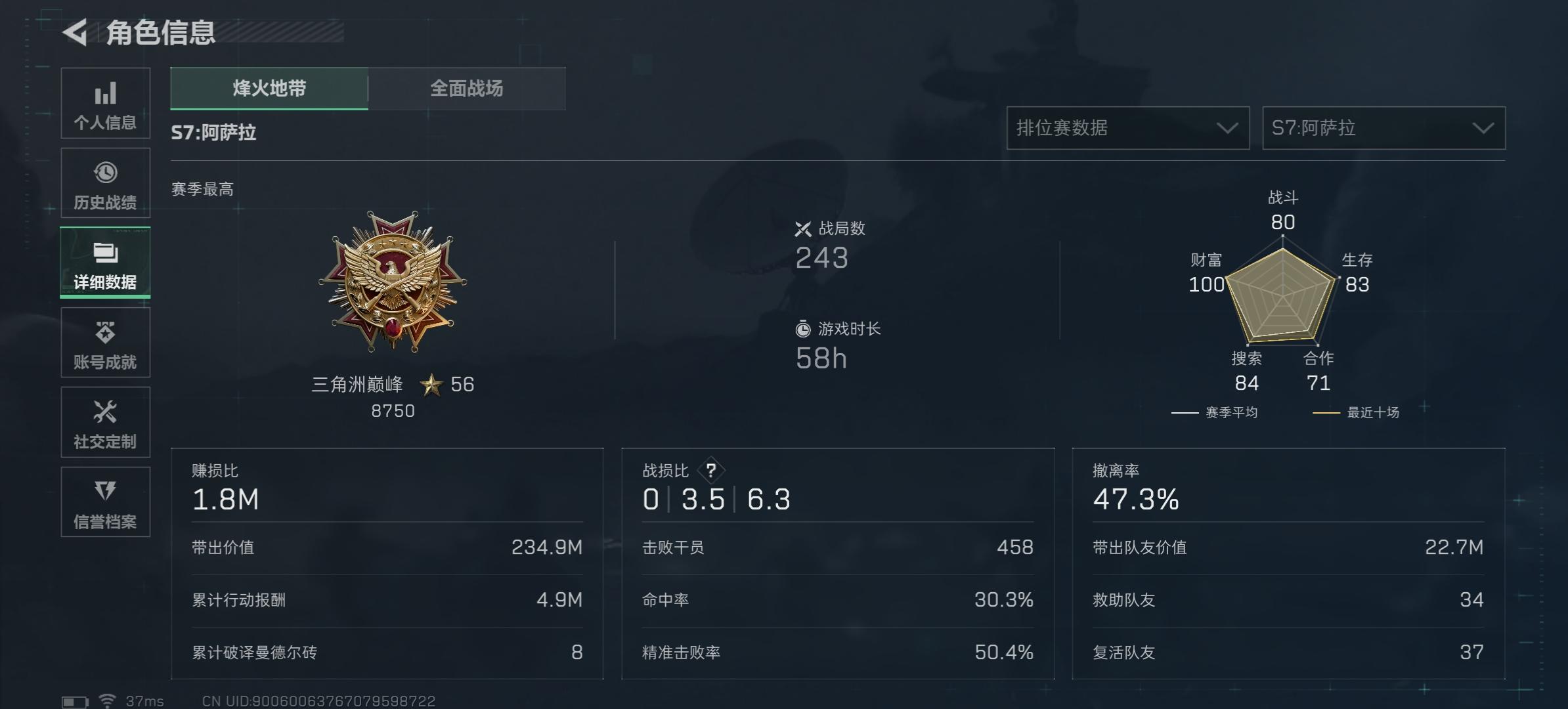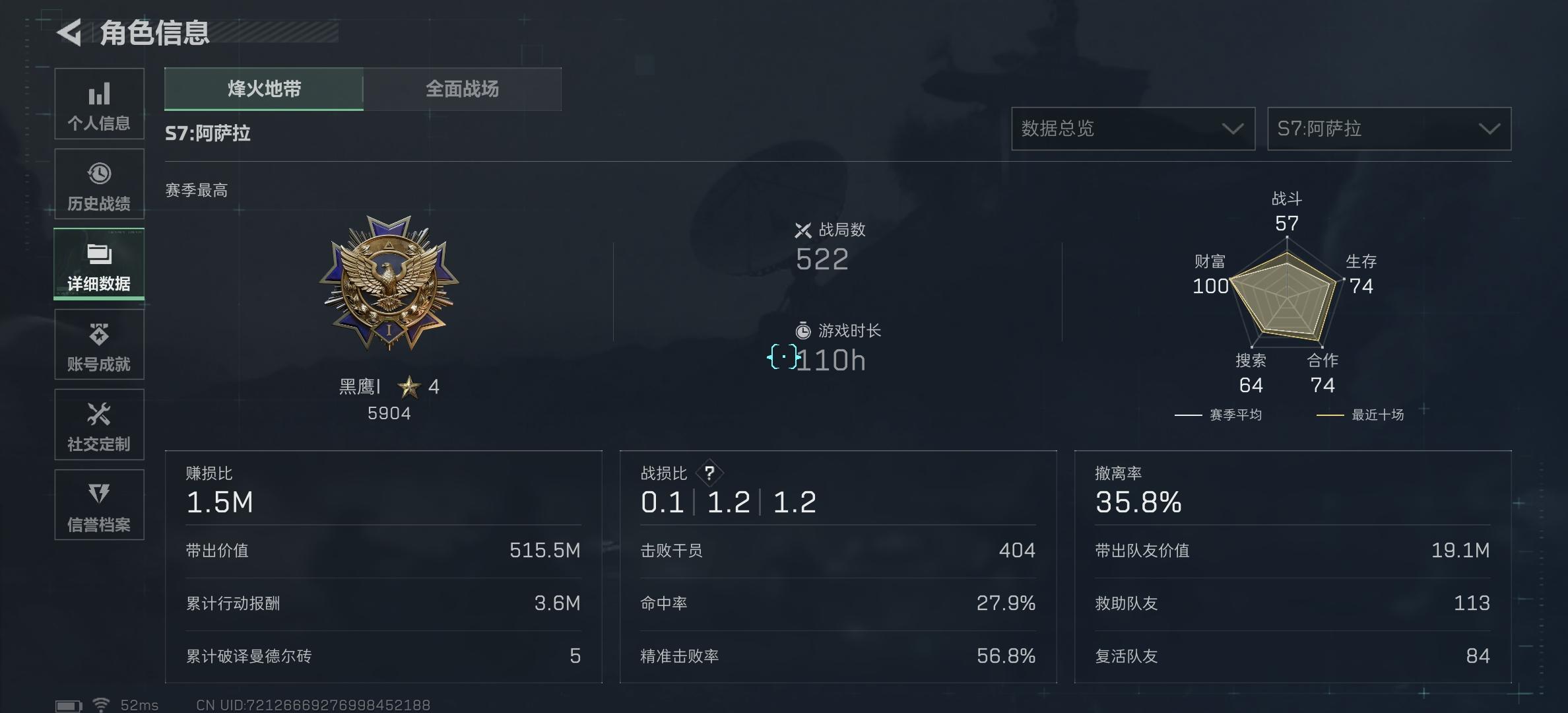 主打巴克、监狱,每天都玩擅长突击位,玩法偏猛攻