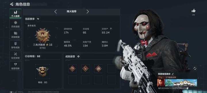 在普坝的世界里手游稳赢,端游也不遑多让,尽量玩手游,因为PC不能像手机一样随时方便,希望女搭是温柔心态好抗压的,至少我是破产还能坚持继续游戏,机密绝密不行就一起去普坝找情绪价值,一般也是打打普坝赚钱再去机密浪费钱。实在不行也能奔赴一下,找个高手带我们飞。平常也会有小哥哥一起三排,基本不野排,尽量能开麦玩。在线时间,工作日会不定时玩的多一点,周末会玩的少。#组队 #三角洲行动 #三角洲行动双