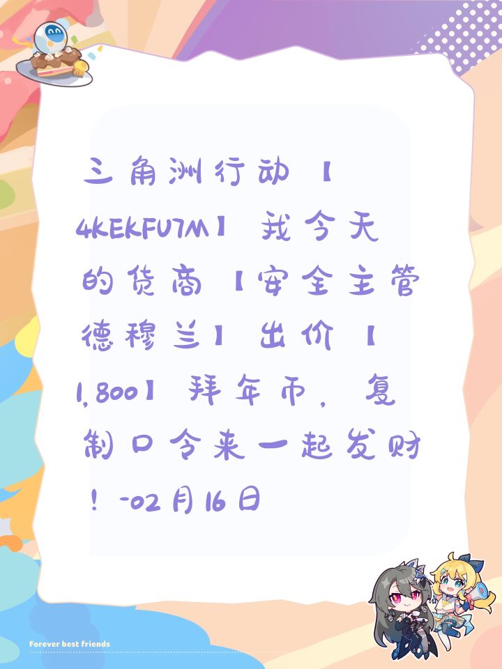 三角洲行动【ELKHF3Z6】我今天的货商【安全主管德穆兰】出价【1,800】拜年币,复制口令来一起发财!-02月16日