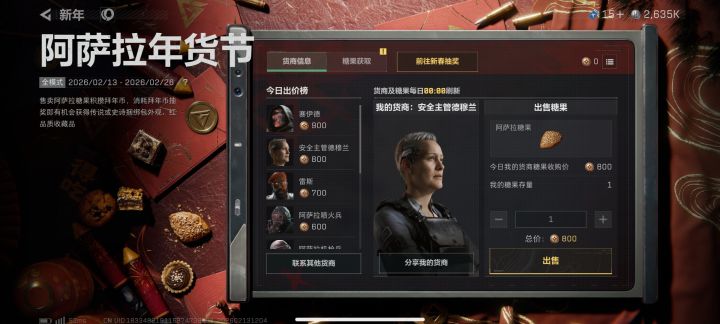 三角洲行动【L5DAASI9】我今天的货商【安全主管德穆兰】出价【800】拜年币,复制口令来一起发财!-02月13日