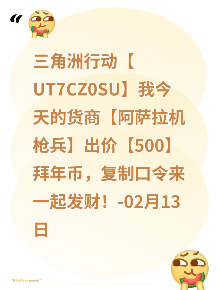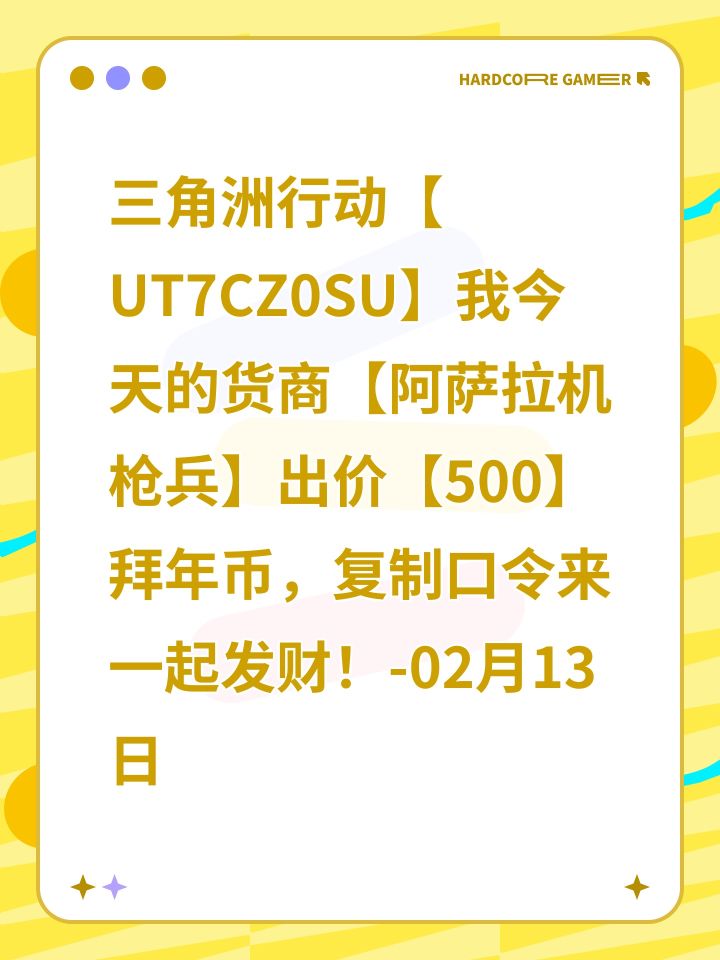 三角洲行动【UT7CZ0SU】我今天的货商【阿萨拉机枪兵】出价【500】拜年币,复制口令来一起发财!-02月13日