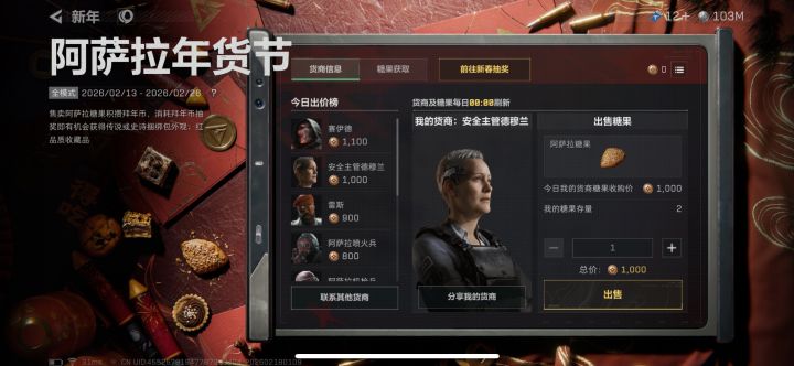 三角洲行动【W3Z8XNUD】我今天的货商【安全主管德穆兰】出价【1,000】拜年币,复制口令来一起发财!-02月18日