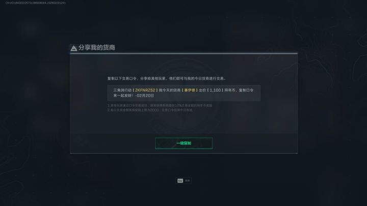 三角洲行动【ZKFNRZ52】我今天的货商【赛伊德】出价【1,100】拜年币,复制口令来一起发财!-02月20日