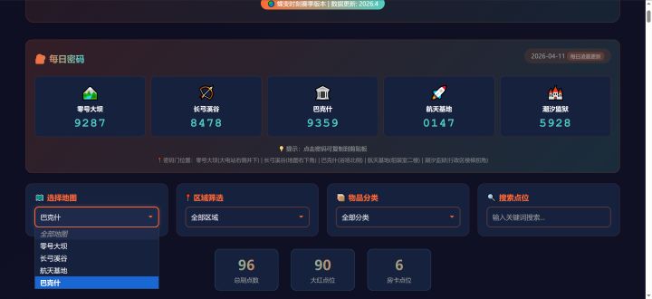 哈喽各位鼠鼠、猛攻哥、唐王大人们!👋 你们的“红点雷达”又更新了!!(叉腰得意.jpg) 继上次第三张地图发布后,后台收到好多催更私信。这不!【第四张】露天刷红点位地图。它!终!于!来!了! 🎉 工具入口👉:🗺️ 当前进度汇报 ✅ 地图4:【巴克什】已解锁(点位更密集,缺三幻神,填充收藏室的可以直接开冲啦) ⏳ 剩最后1张地图:(潮汐监狱)还在疯狂标注+调试中……(头发-1-1-1