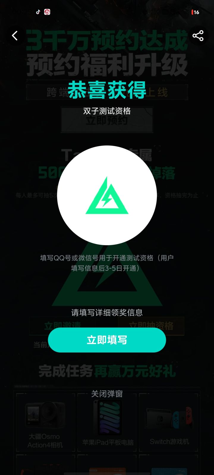 三天了什么时候能激活,等激活了测试都结束了taptapID:56122560QQ号:2315414313#三角洲行动