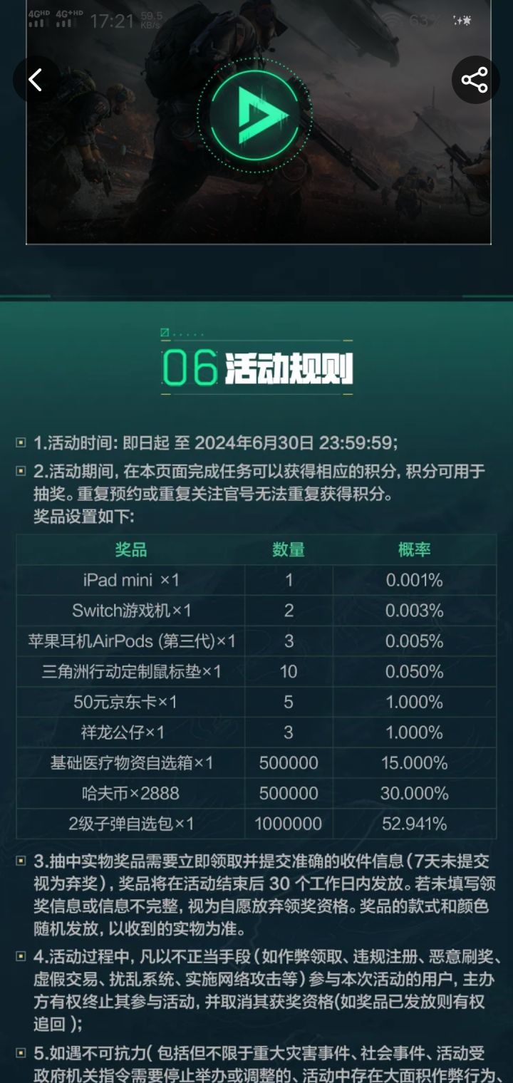 所以我想知道中奖率里面为什么没有表没有中奖这个东西而我却抽中了哪怕给个子弹也行啊